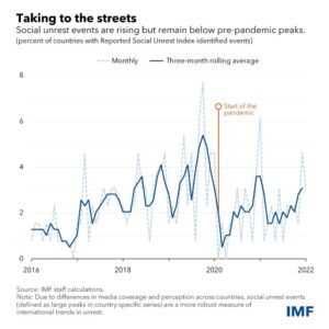 The impact of the reduction in the availability of food and the rampant inflation sooner rather than later will open the doors to the third guest: political violence. To the extent that hunger increases in the world and inflation devours the income of the middle classes, a wave of political violence could arise that few governments will be able to confront successfully. Because the only way to contain it is by channeling it and opening spaces for the economic improvement of the population by its own means. This aspect of world reality has led the International Monetary Fund to be the first multilateral financial entity to sound the alarm. The IMF has published a table on its weekly blog where it predicts an increase in political violence similar to the one that marked the days of 2019.
