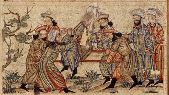 La ilustración muestra, quizá el primer asesinato de la secta, 1096 aproximadamente. de un libro del S.XIV